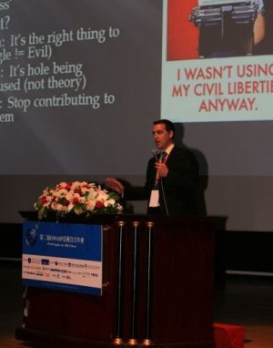 | 開放網站軟體安全組織(OWASP)今天(10/27)在台舉辦年度資安大會,這是OWASP第二度在台舉辦,同樣以該組織著重的網路安全為主要議題,從網站掛馬、網路駭客、以及電子郵件安全等議題都有著墨。 這次由於報名人數超乎預期,OWASP台灣分會還緊急將活動地點從台大醫院國際會議中心改至能容納較多人的台北國際會議中心。OWASP二度來台,議程規模從去年的半天擴大到兩天,相對討論議題也較廣泛。 全文>> |  | |